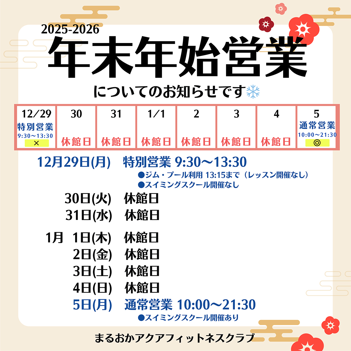 □…スイミングスクール休館日