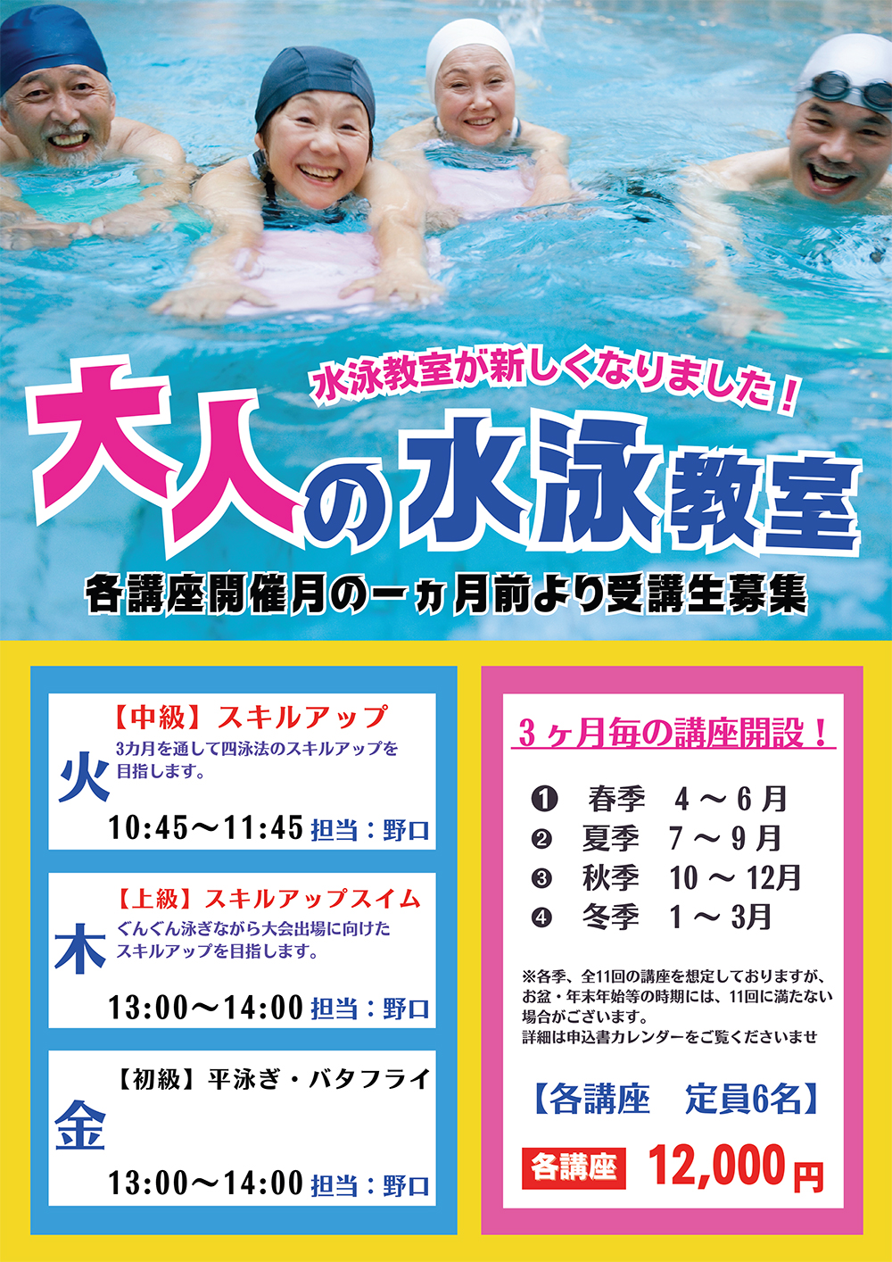 大人の水泳教室 受講生募集!